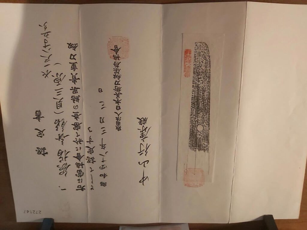 Shirasaya+sword pouch +NBTHK CERTIFICATE and last sword registration card.