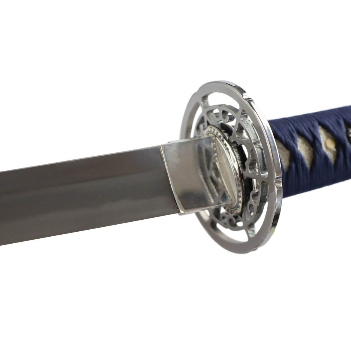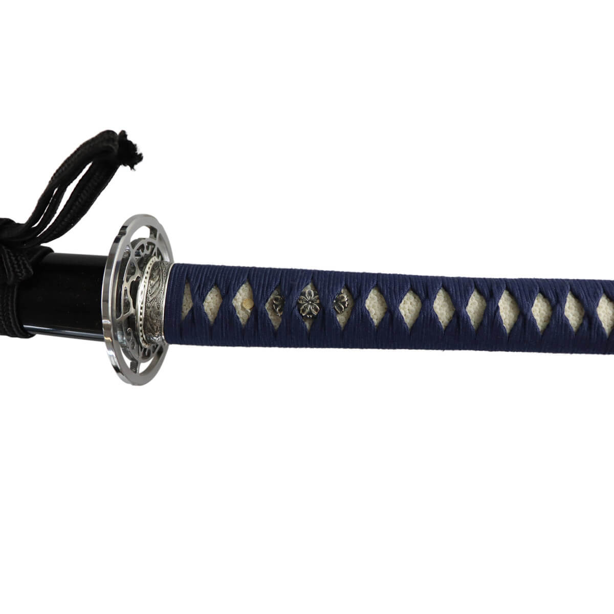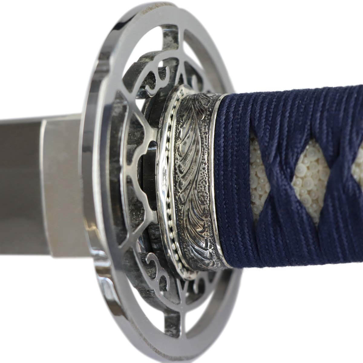 Shirayuri means the white lily. The fittings on this sword are light in colour, which creates the classic beauty of a Japanese sword. The fuchi and kashira are decorated with elaborate patterns. The handle winding is bound with Japanese silk.