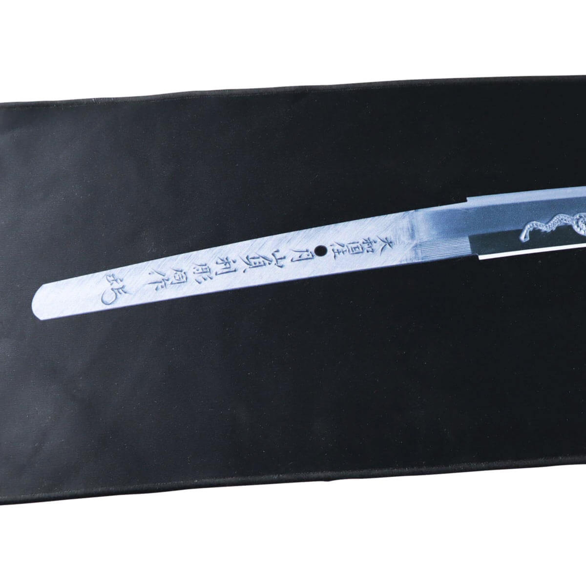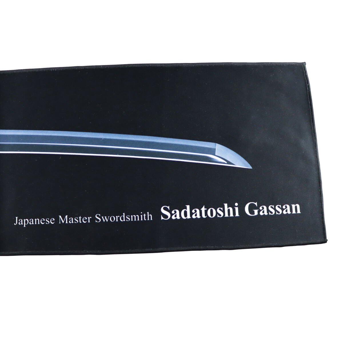 The mat features an art print of a Japanese sword. It is the work of master blacksmith Sadatoshi Gassan, the head of the Gassan school, which has existed since the 12th century.