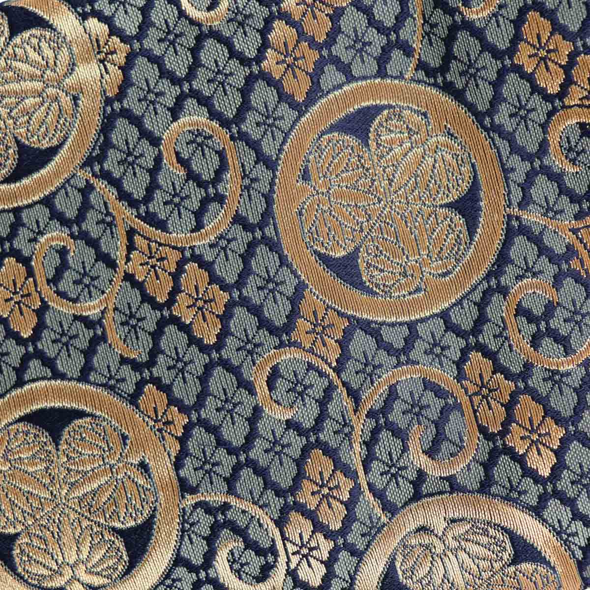 Basic colour blue with gold-coloured, embroidered Mon symbols.