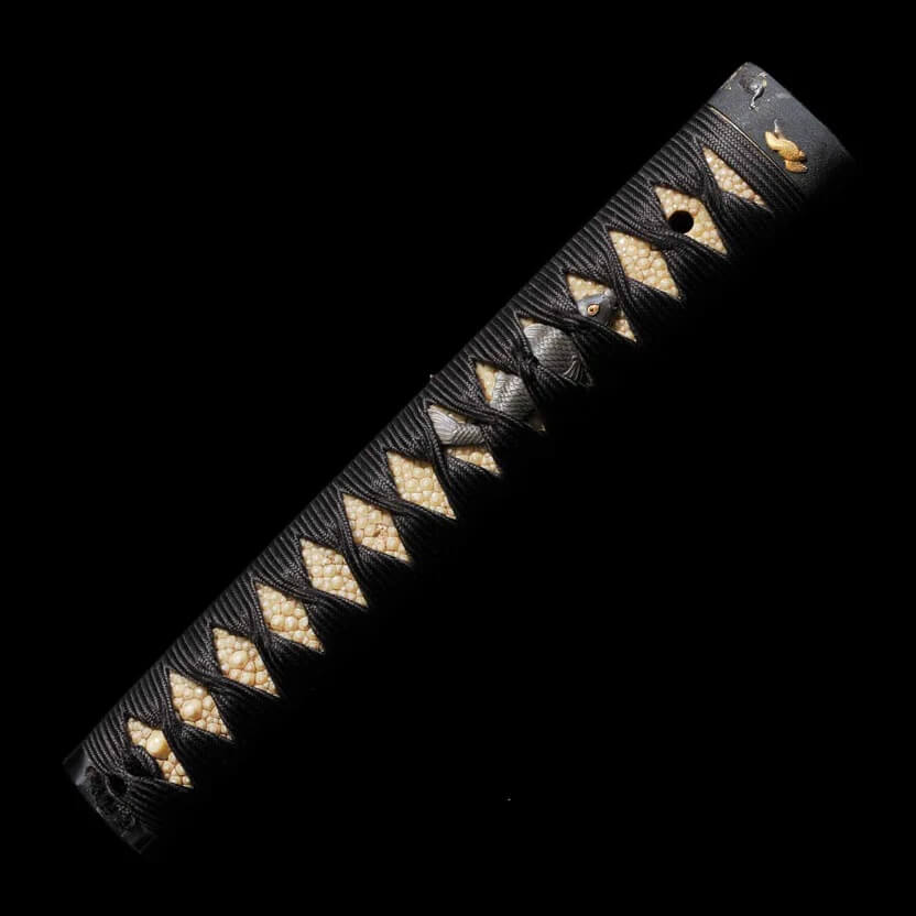 Le tsukaito du katana présente de légères traces d'usure sur la partie supérieure du kashira.