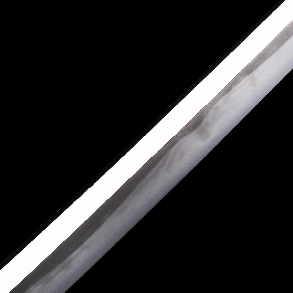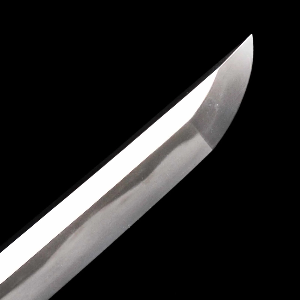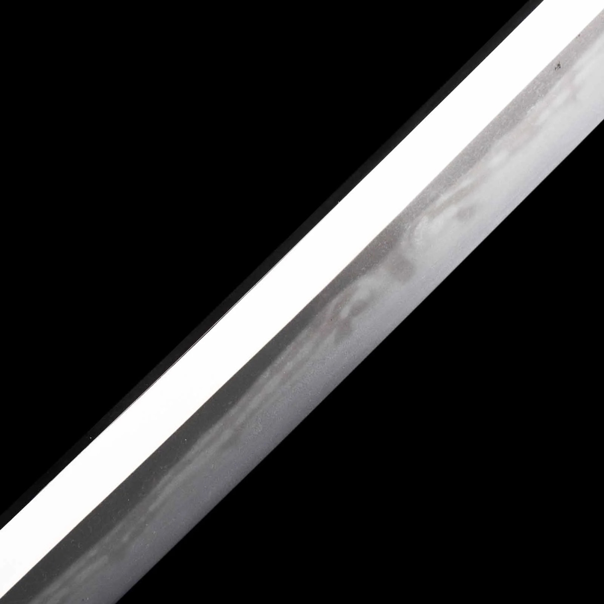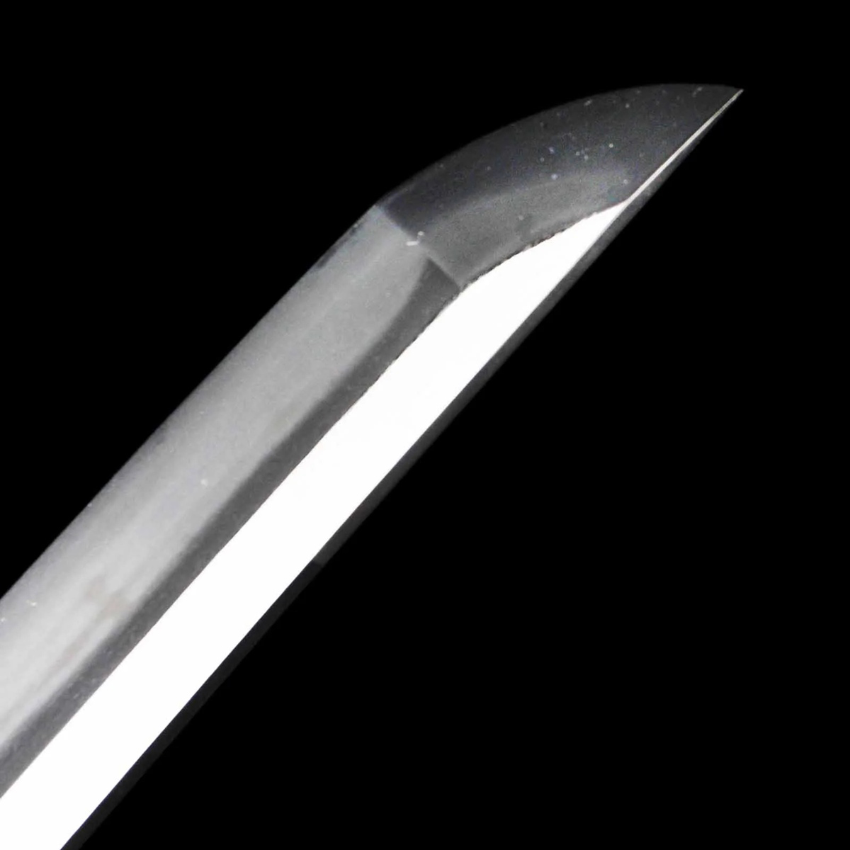 La lame est très bien conservée. Le jigane est riche en ko-itama et présente des yubashiri et des chikei. Le hamon est de style Sudareba, le style caractéristique de Yoshimichi, avec des spirales et des sunagashi par endroits.