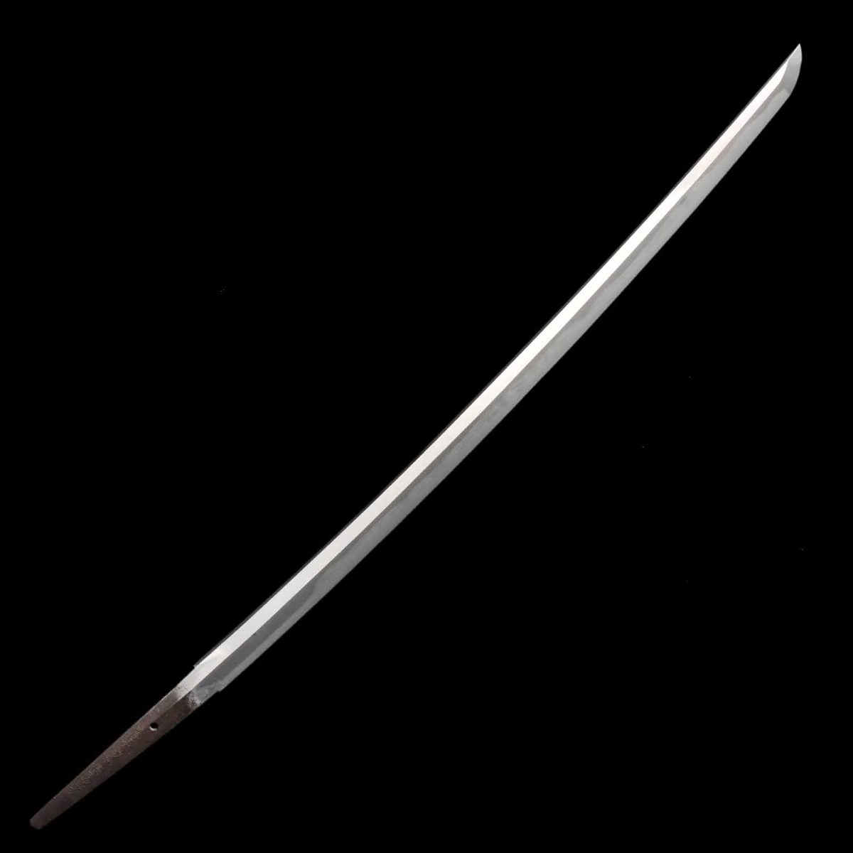 Le côté ura de l'épée porte l'inscription "Seshu ni oite Nanbantetsu wo motte Kore wo Tsukuru" = Fabriqué dans la province de Settsu en utilisant du fer nanban.