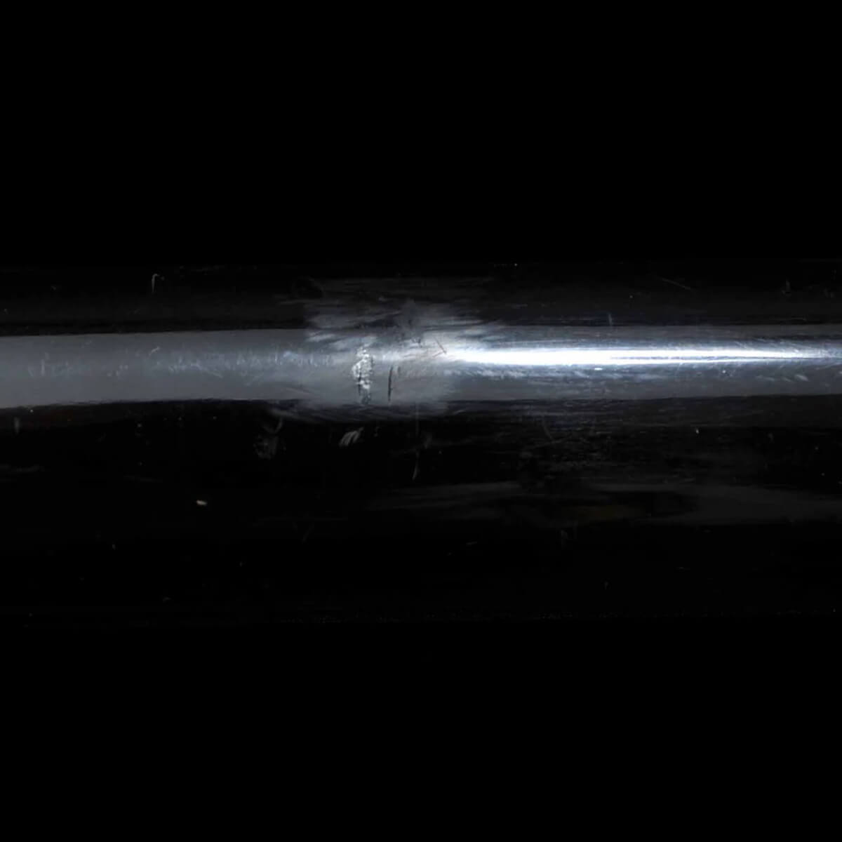 Itame-Hada mit Yubashiri. Der Hamon ist elegant, schmal und ein Nioi-Suguha.